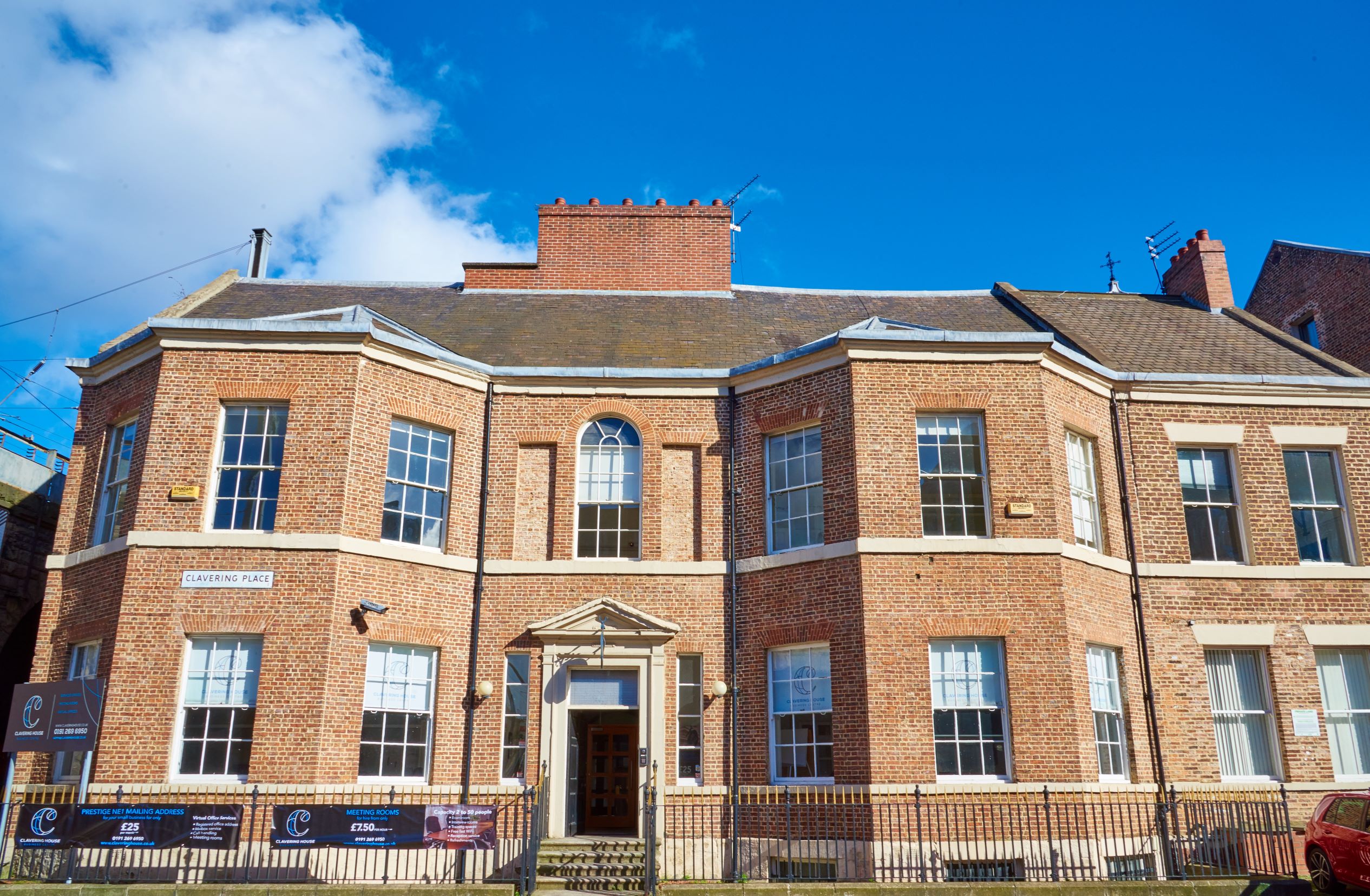 Clavering House is a prestigious Listed Georgian building situated on the edge of the Stephenson Quarter, Newcastle’s Business District. The workspace is a 2-minute walk from Newcastle Central Station and Metro and the shopping district is minutes away. If you need to rent a city-centre office or hire meeting rooms near Newcastle train station the centre is the obvious choice. The centre have their own secure car park available on a pre-booked basis, and additional public parking is also available outside the building.