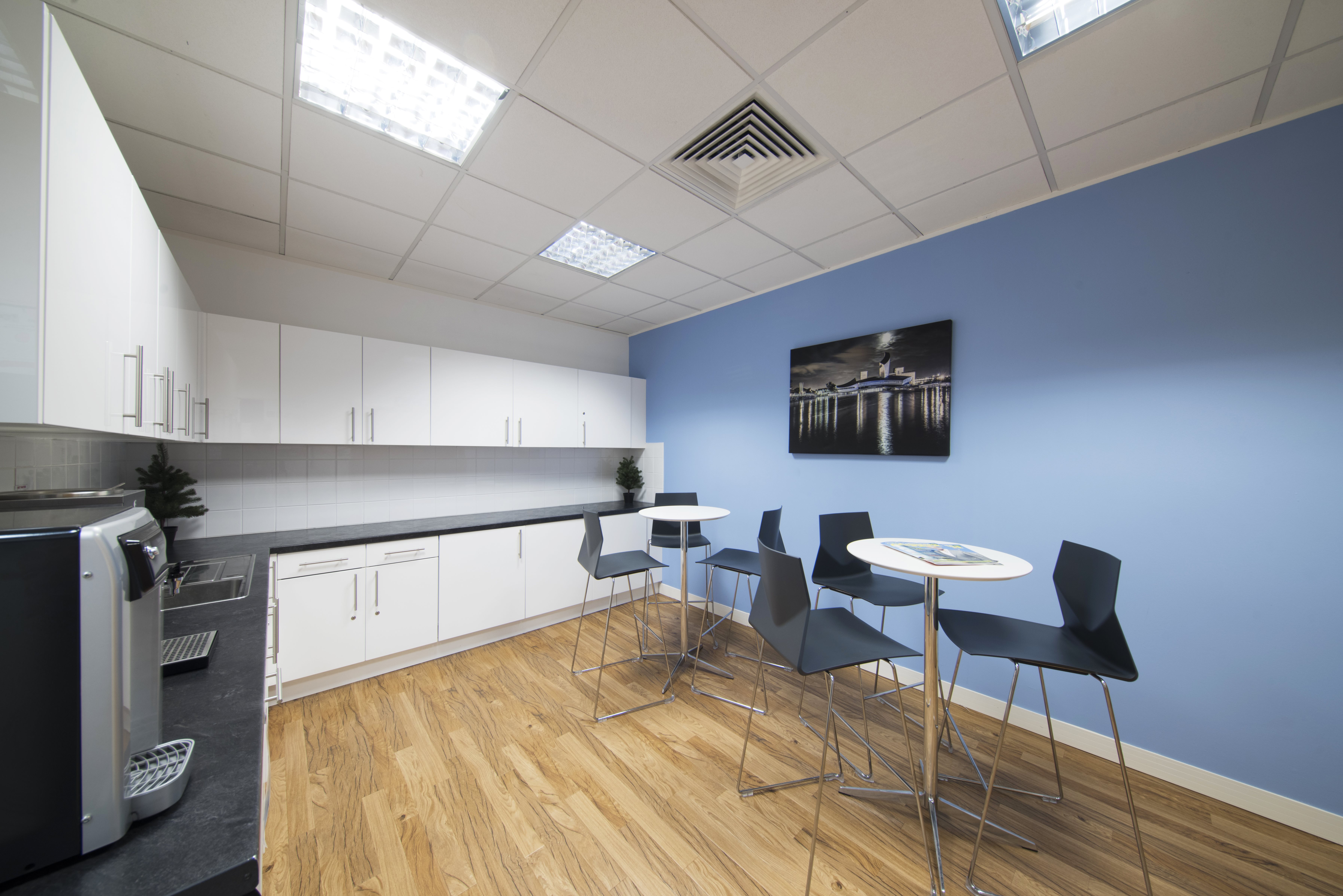 Located adjacent to Media City, less than 2 miles from Manchester city centre, this business centre is close to the extensive motorway network and Manchester International airport is only 20 minutes' drive away. Additionally, the Metrolink tram service also stops just a few minutes' walk from the centre. Surrounding the space are a number of bars, cafes and restaurants, including Craftbrew, The Alchemist and Pizza Express. There are also various hotels nearby, such as the Copthorne and a Holiday Inn.